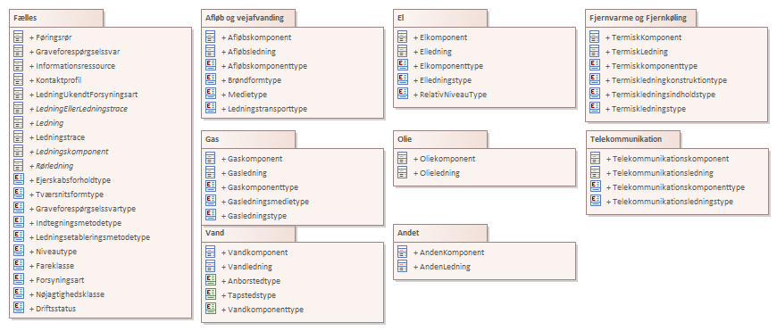 Samlet oversigt over LER-datamodellen for udveksling af ledningsoplysninger